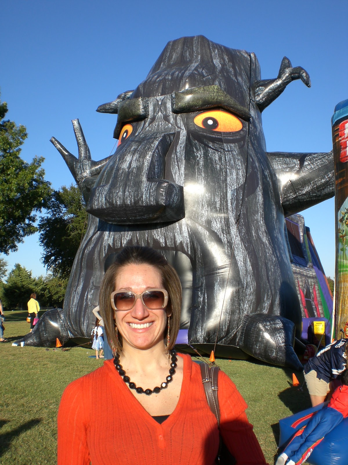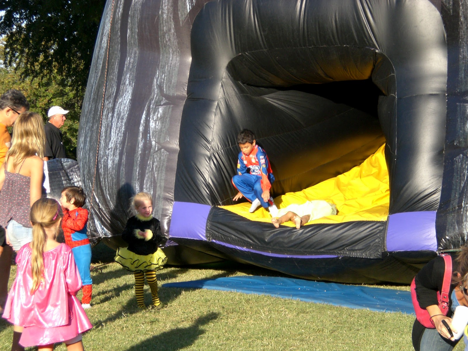 | Hit of the carnival: the bounce house. Looks like it’s eating my head! |