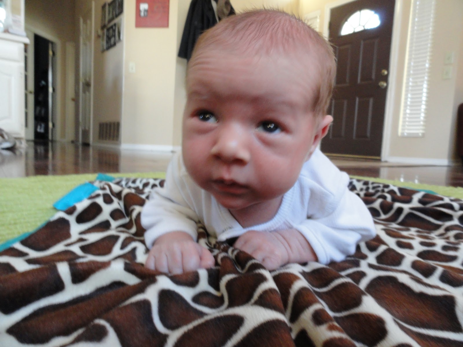 One of the things Dr. G wants us to do is try out some tummy time. We did that today and I’m impressed with how strong he is! (Reality check: this tummy time lasted all of five minutes, but I was still easily entertained).
