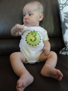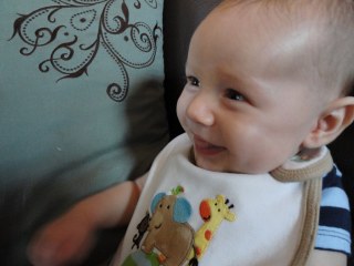 Smiling is the thing he does best. He’s happy probably 90% of the day. He loves making silly noises, blowing bubbles, and especially loves when you do them back at him. He has also become a big fan of singing… even my singing (if you can call it that). So, he’s either tone deaf or just really sweet. 🙂