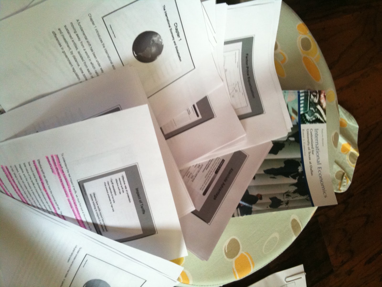 I don’t even know why I’m blogging right now. There’s about 9,394 other things I should be doing. Somehow in the past three weeks, my job just skyrocketed into major workload increases and a little bit of job scrutiny. On top of all that, I’m taking two online classes for my MBA and they are literally kicking my ass. 8-weeks of solid cramming of information, two mid-terms, two individual papers, one individual project, and one group project, and two finals. YIKES! All this in 8 weeks is a LOT. Check out what I had spread around me today: