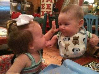 On top of work and school, I’m trying to still be a good mom, wife, and friend! It’s been a really, tough balance! We celebrated Fathers’ Day in Gilmer which was really nice for a little getaway. I really had zero business going out of town, but I needed to disconnect and be with family. Plus, we had a fun little surprise and I got to have lunch with my dear friend, Janna, and her kiddos. Here is Walt and Blake (11 mos) meeting again. 🙂