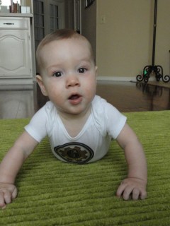 It seems Walt keeps hitting milestone birthdays when I get back in town from business trips. This past Friday was no different. I was gone to San Francisco for one day (see post), and got to come home to a rambunctious little six-month old! We see Dr. G on Tues to get all his physical stats, but here’s a quick recap of the Munka at six months: