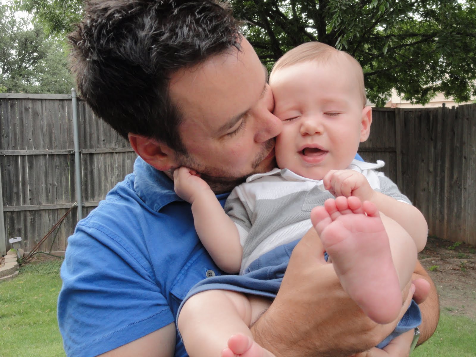 - What a little laugher! He is a giggle machine especially when Chris tickles his belly or when mom pretends to drop him.