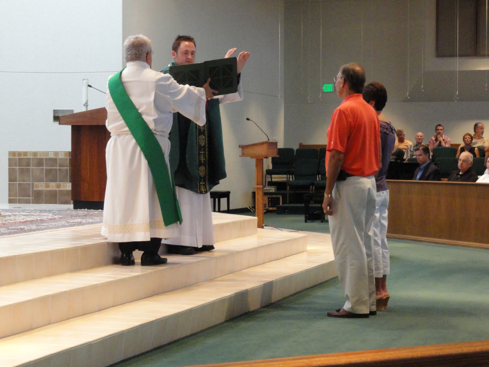 We were lucky enough to get as close as possible to having the whole crew together. Walt made it to church, but we got a sitter for dinner (with such an early bedtime, he’s not the best dinner company unless we eat at, say, 5:30). Mitch, my oldest sister’s oldest son (read: the oldest grandchild…perhaps the favorite??) couldn’t make it. He’s down at A&M and delivering pizzas for cash. Can’t get in the way of a paycheck in college! We met my parents for church where they had a mass dedicated to them. Here they are getting a blessing: