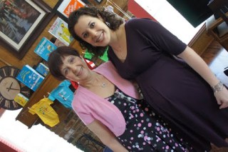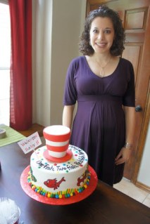 | The sweet mommy-to-be with her cake (Um, can you even tell she’s preggs???) |