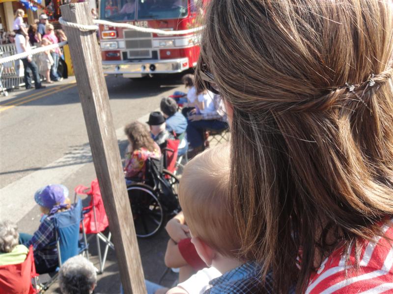 On Saturday morning, we witnessed Walt’s first Yamboree parade. This is a BIG deal. The parade feature floats of the Yam Queen and her Yam Court (100% serious). The dresses are the most fun for me to look at 🙂 Walt was a super big fan of the entire parade. He loved the cars driving by. Jeff and Janna McClure and their adorable kiddos, Cash and Blake, came up from Tyler to share in some Yam fun.