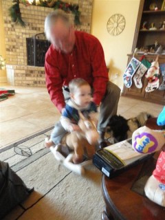 Christmas morning we woke up and just took our time hanging out in our PJs. In fact, we relished in the Christmas morning calm so much that Walt didn’t open his gifts until after his first nap. We realize that opportunity will likely never ever happen again! Walt was blessed to get some awesome musical and singing toys, some clothes from mom, and books. He also got this rad horse from Papa and Nana. Enjoy the video I posted of Walt attempting to ride the pony.