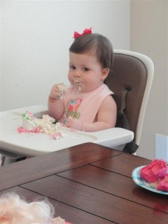| Look at this sweet girl going to town on her smash cake. Atta girl!! |