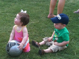 | Walt loved playing with his friends. Reese has no idea her ball is about to be swiped. |