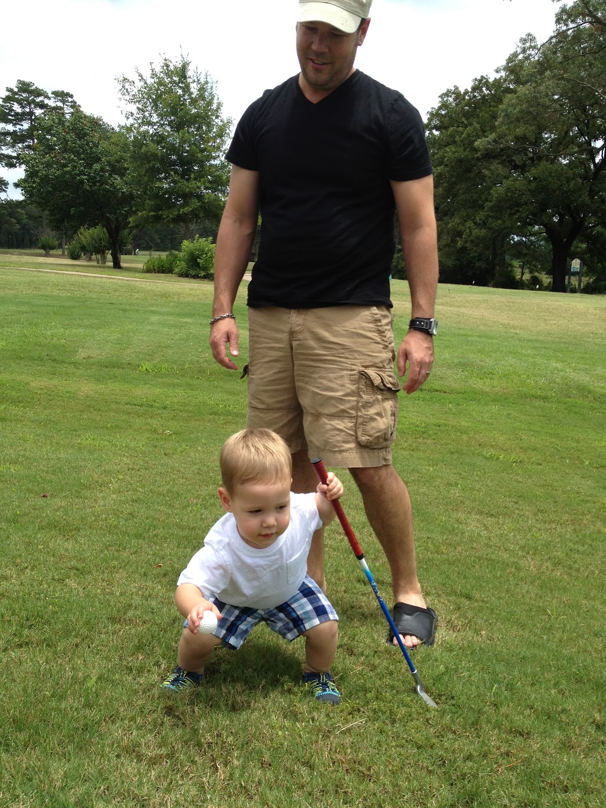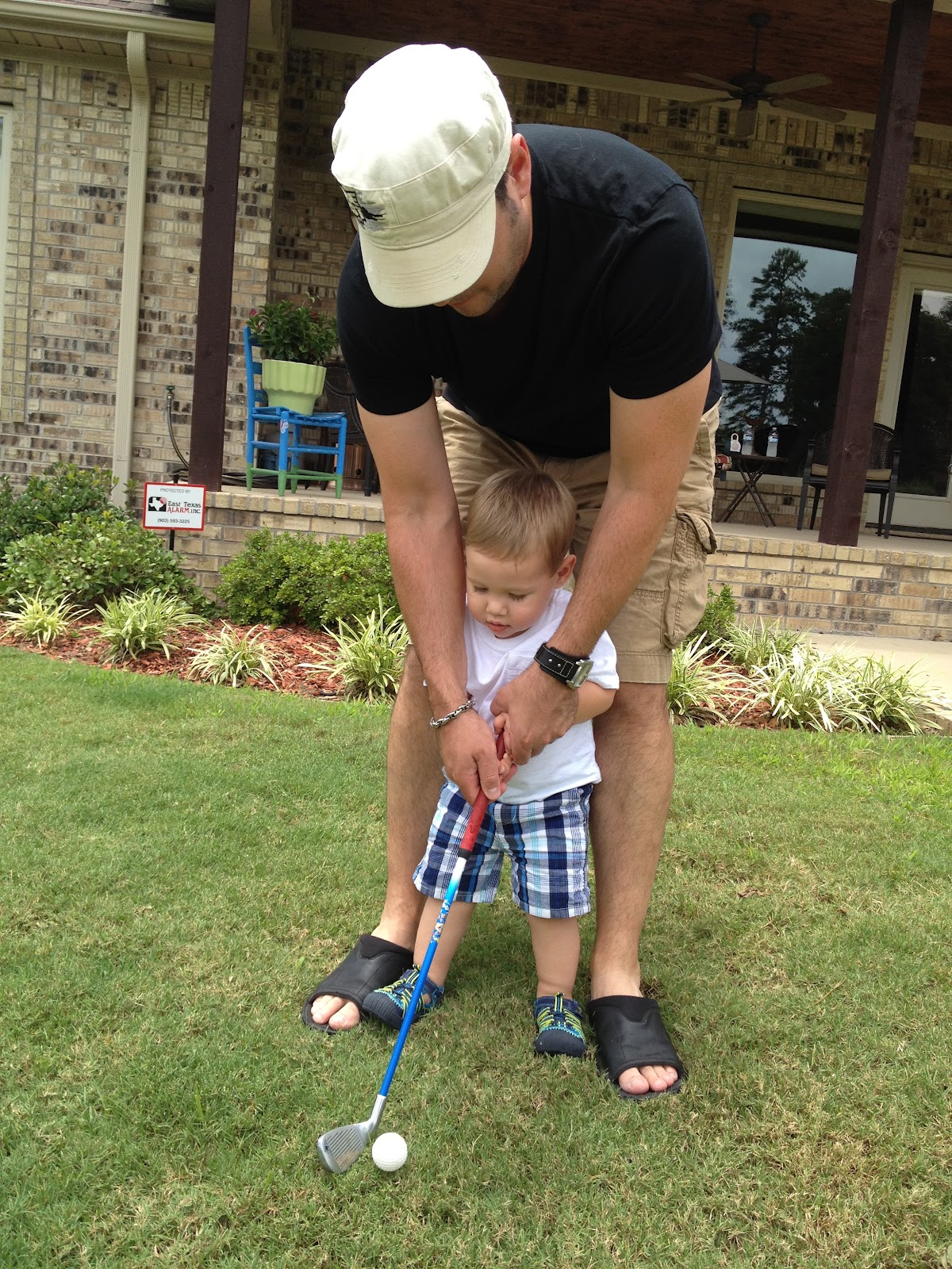This Father’s Day we spent it in Gilmer, which was nice because it’s always so relaxing to be in the country. Chris got to do what he loves the most, which is play with his best buddy and play some golf. So, you can imagine the excessive amounts of joy when we combine BOTH of those things into one, single activity. To my chagrin, Walt was totally interested in the sport of golf and kept wanting Chris to help him. He’d follow him around with the mini-clubs saying “Help me! Help me!” How could he resist!?