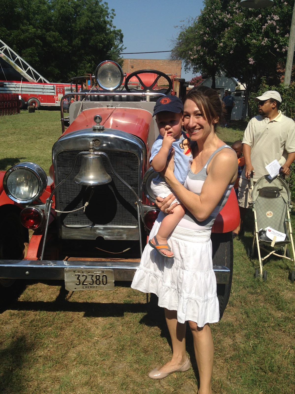 This summer, I’m trying to capitalize on the fact that Walt is definitely more interested and curious about things, yet he’s not insistent on spending 6+ hours doing something. We’re doing real good if we catch his attention at one thing for an hour. Luckily, there are so many free and cheap things to do during the summer. So, last week I was perusing www.guidelive.com and noticed that the Plano Fire Department was celebrating it’s 125th anniversary at the Heritage Farmstead. Having grown up in Plano, I have taken many a field trip to the Heritage Farmstead, which is the family home/farm of one of the original families in Plano. All dorkiness aside, I have very fond memories of this place.