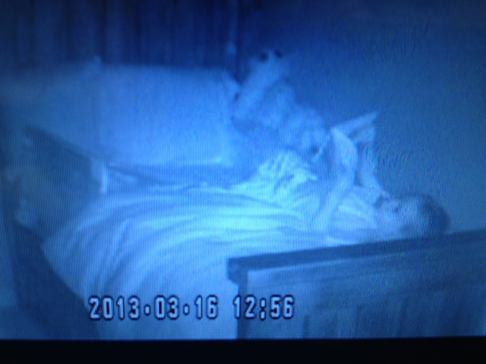 This is what it looks like when Walt gets out of bed. Straight to the door. Notice the child locks on his door handle since he’s smart enough open the door.