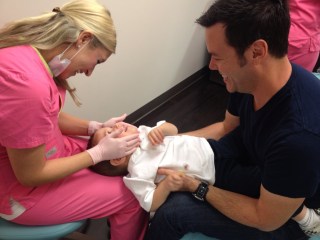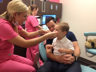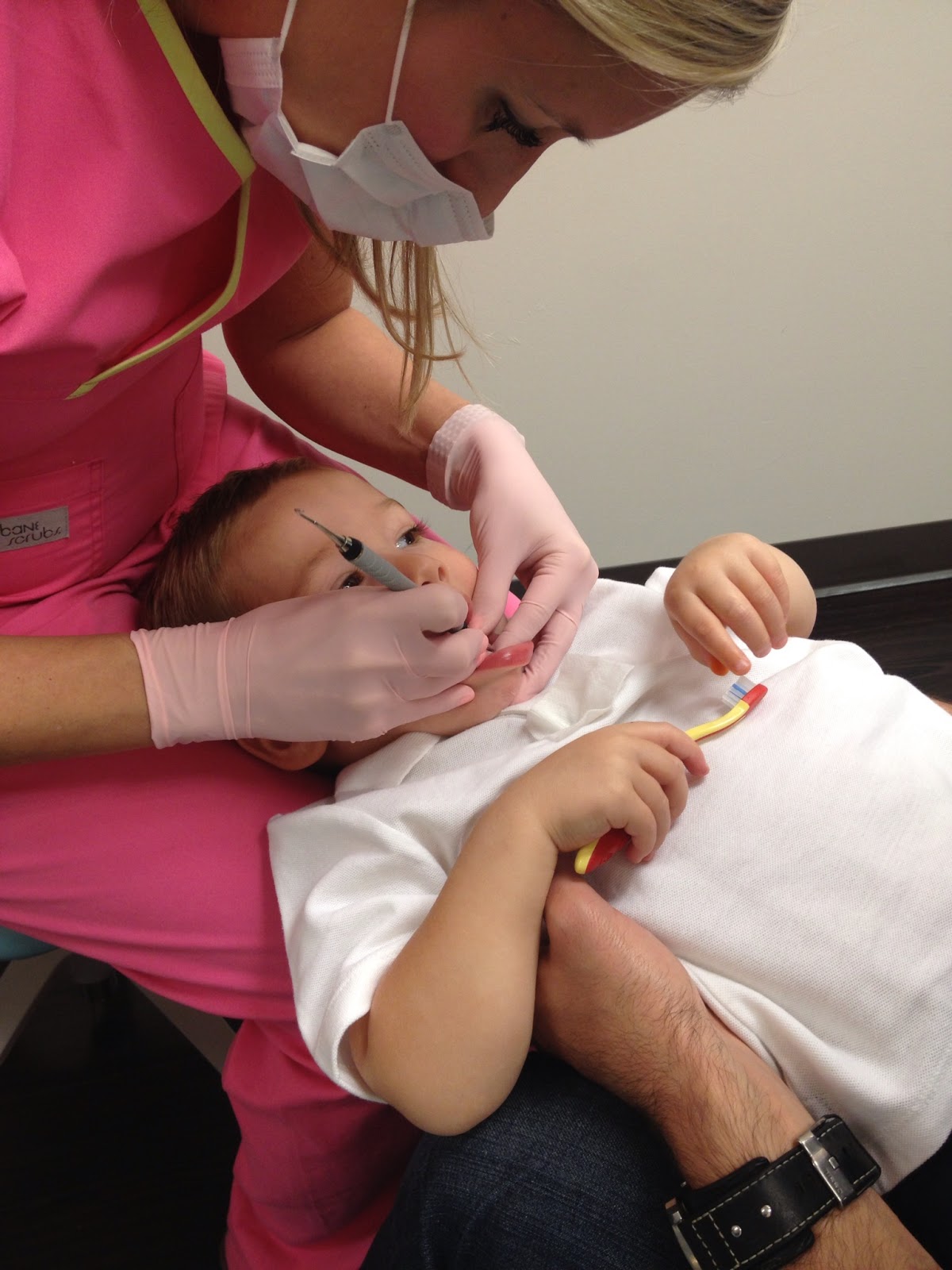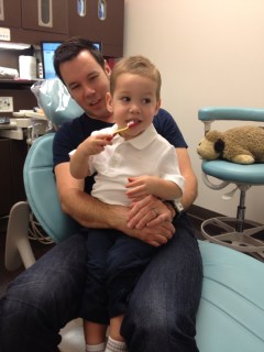 We got a fabulous referral to see Dr. Laura Mitchell at Frisco Mini Molars. This woman was totally born to work with kids. It was such a wonderful, stress-free experience. Walt was handed a toothbrush immediately when we got there, and thought this alone was pretty awesome. He proudly showed Dr. Mitchell how he brushes his teeth.