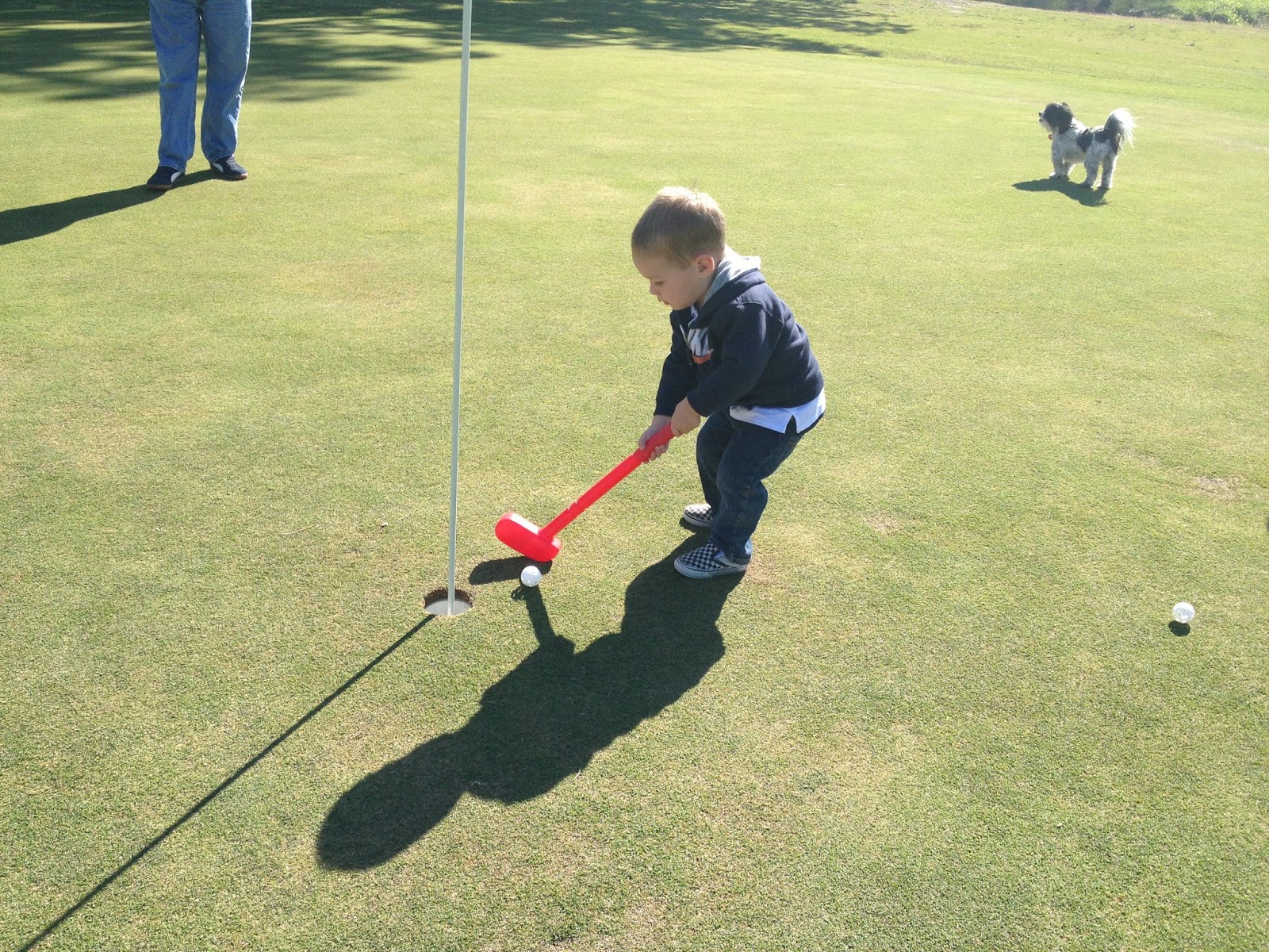 | Playing some real golf (with non-regulation clubs) as Izzy watches |