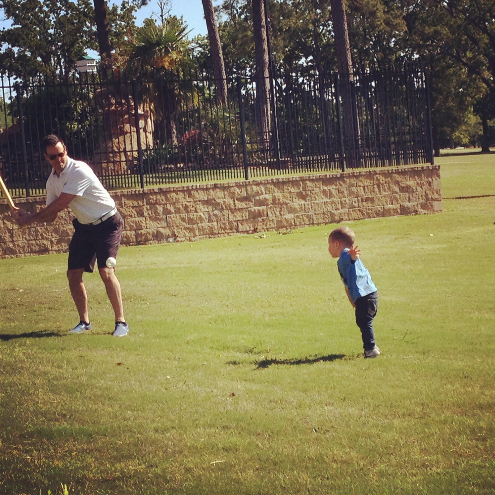 As I’m approaching the “do not travel” stage of pregnancy, we weaseled in a quick trip to East Texas this weekend. The trips out there are always nice. Things slow down a little bit. Nana and Papa live on a golf course with no fence, so Walt has lots of free reign.