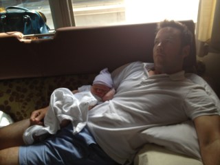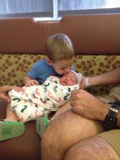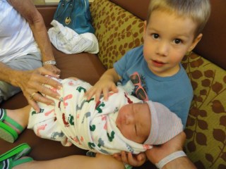 After a nice day as a family on Saturday, Chris and I enjoyed a homemade grilled pizza and went to bed like normal. I remember dreaming about contractions. Turns out, I was having some. I finally became lucid enough around 4:30 a.m. to begin counting the contractions. They were about 10 minutes apart and not comfortable, but certainly not unbearable. After about an hour of counting them, I became antsy wondering if this was going to go somewhere or if I was just going to lie around counting contractions all day. So, at 5:30 a.m. I decided to get up and lie on the couch. Chris woke up and I told him what I was doing, but said not to get too excited.