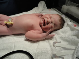 By 7:00 a.m. I felt much better. Epidurals have a tendency to slow labor down, but I guess Oscar was ready. I quickly progressed to 10 cm (yet my water was still in tact). The dr. broke it and at that point, we were ready to push. I closed my eyes and got mentally ready for the pushing game, which I know can take a while. They got me all set up and said, “Ok, here comes a contraction, push!” During that contraction, I pushed three times, and heard a baby crying! There he was, Mr. Oscar Angelo!