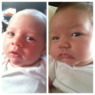 Finally, everyone is asking who Oscar looks like. Frankly, I don’t think he looks like Walt did when he was a newborn. And I also didn’t think we could make a kid that looked more like Chris than Walt, but I think we have… You be the judge in this side-by-side. Walt is on the left.