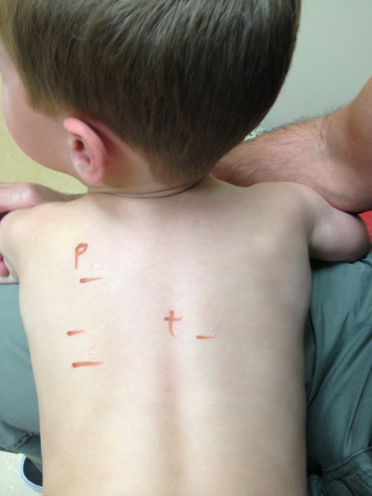 We took Walt to Dr. Moore this week to get re-tested. Many kids can grow out of the allergy by the time they are five years old, but this is really the only way to tell, without causing anaphylaxis. Since we practice “total avoidance”, we really had no idea if the allergy was still present. Welp, it is. 🙂 You’re either allergic or you’re not, but they do grade the reaction. Walt is a 3, which is supposedly pretty sensitive.