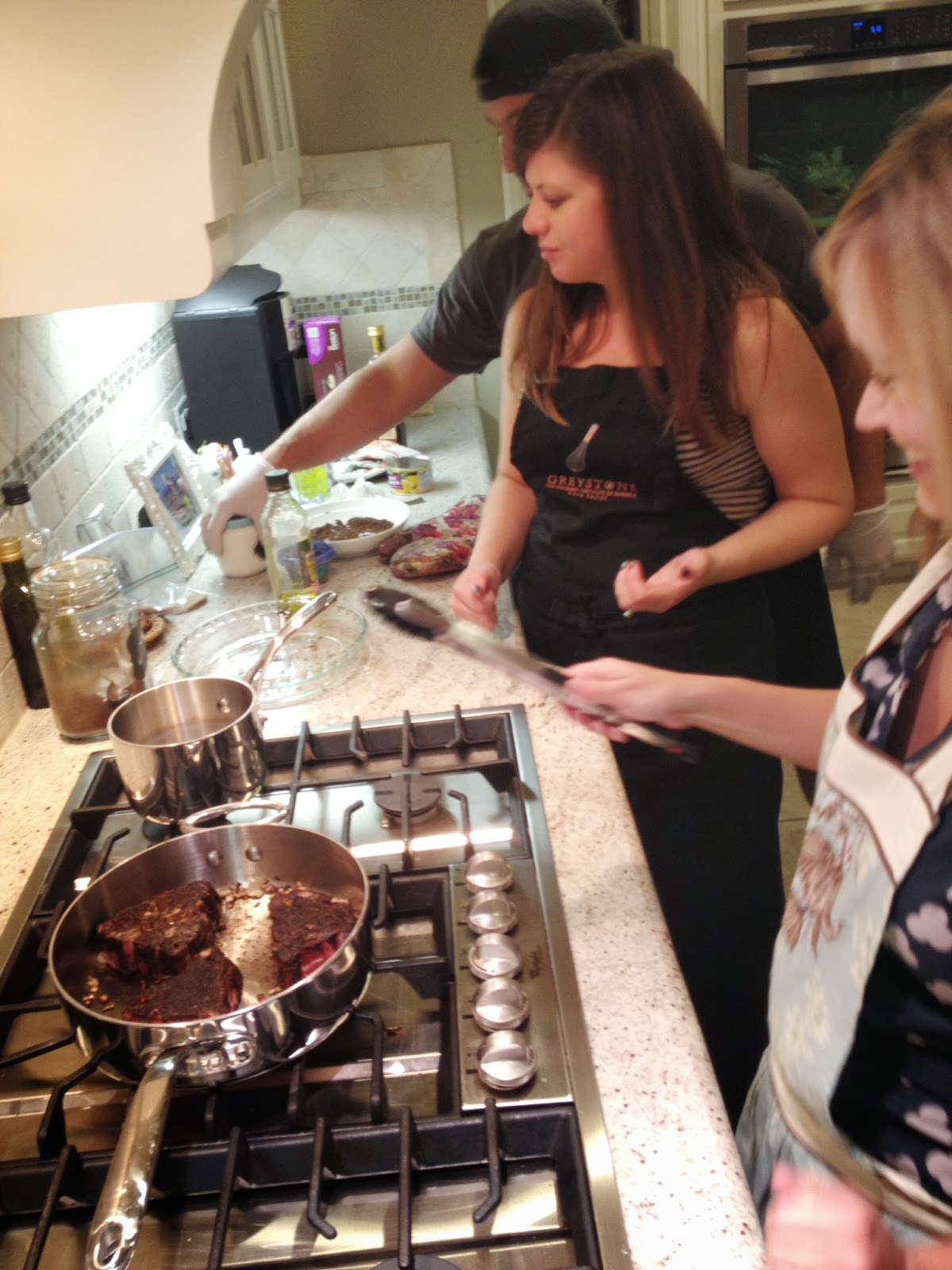 The last five minutes were amazing. Chris and I sat back with our glasses of wine and watched them sweat. There was concern over “doneness” of the girls’ meat and the boys were hung up on presentation and details. We literally counted down the last seconds and everyone’s hands went up in the air.
