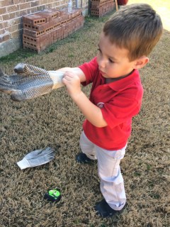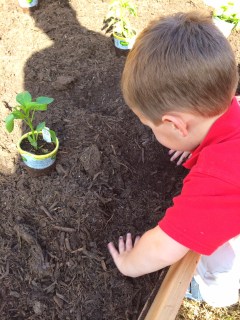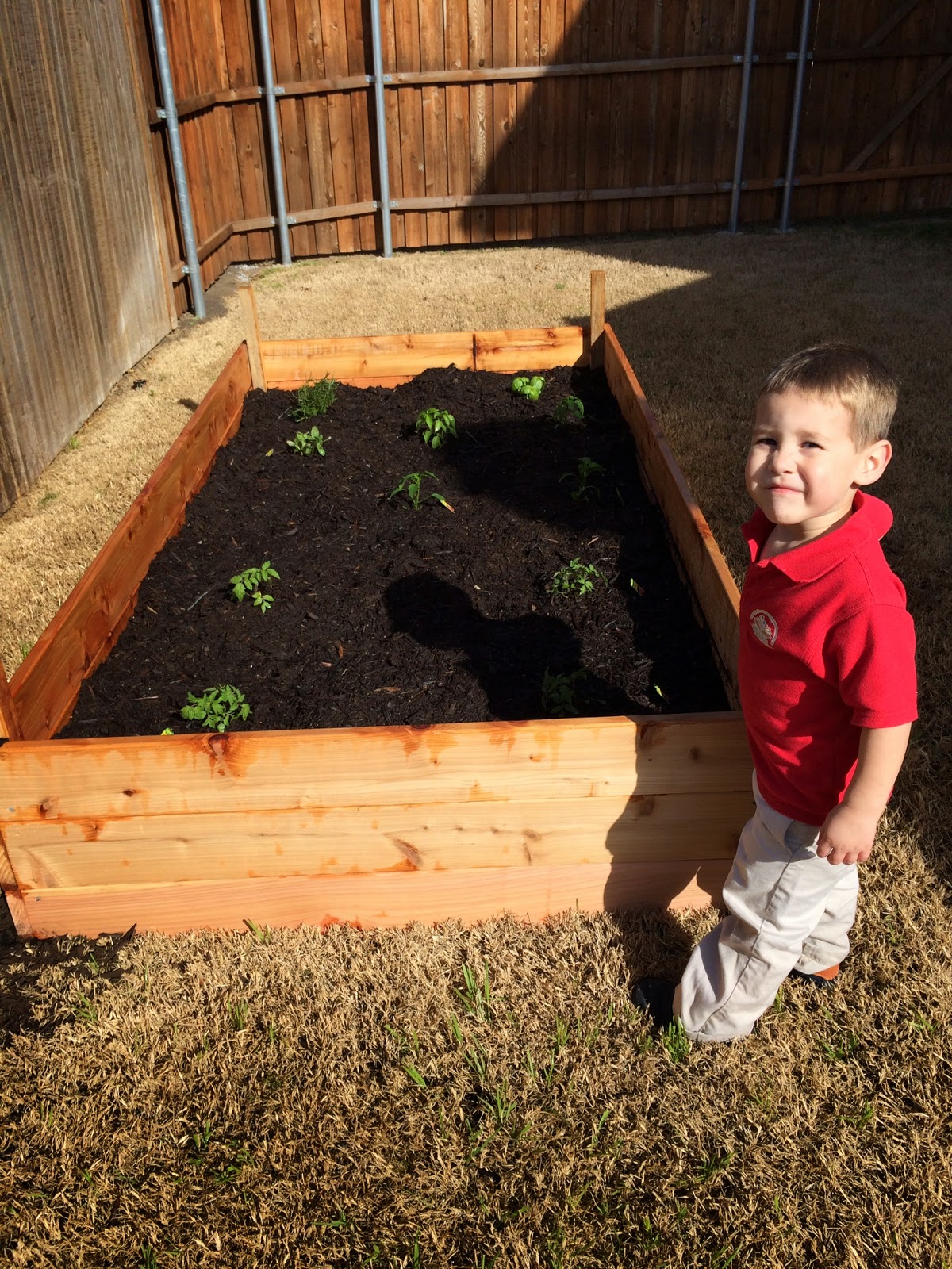 Ok, fine. We aren’t living off our land anytime soon (not sure 1/4 of an acre track housing would allow for much farming anyways). But, Chris got some inspiration and built a raised garden planter. He was so excited about it that he pulled Walt out of school early to help him plant the goods and give it a good watering.