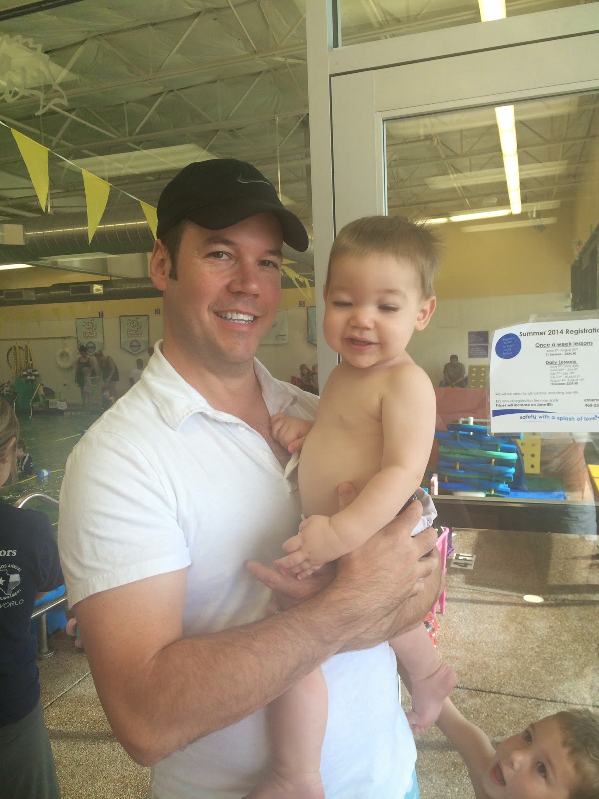 The recap of the first lesson was surprising. Walt was a super champ. He was completely fearless. He jumped off anything, went underwater, laughed and generally had an amazing time. Oscar, not so much. He on-and-off fussed the whole time. Never really crying, but mostly just letting us know that he wasn’t feeling it. I think it will just take some getting used to.