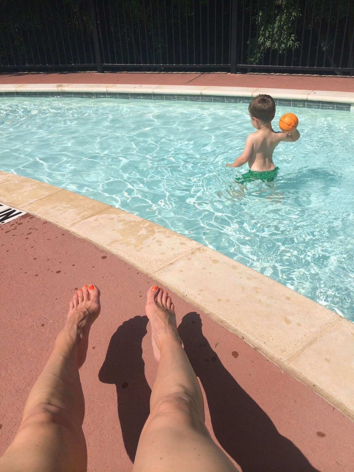 In the morning, I took Walt to our neighborhood pool. Seriously, it was the most relaxing morning, I’ve had in months. He’s perfectly fine in the kiddie pool, so I just lounged and watched (then, eventually got in and we played). We had the pool all to ourselves.