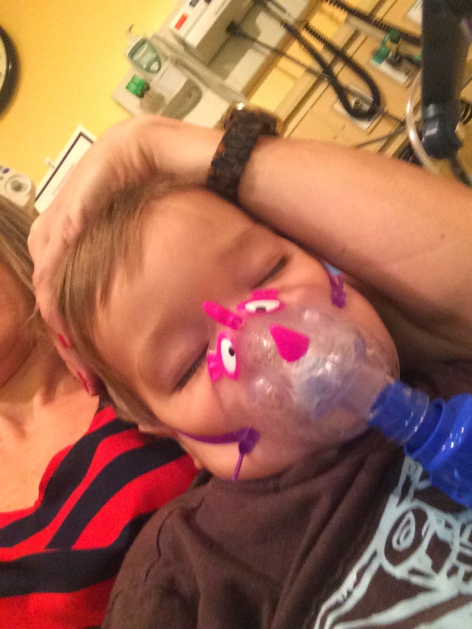 Oscar and I came back from Gilmer on Sunday afternoon, while Chris and Walt stayed back to play some golf. So, Monday a.m. I went about my business getting O ready for school and myself ready for work. Nothing was unusual. He was a bit congested, but not uncommon after a road trip. He was also mildly wheezy, but this is a regular occurrence in our house. We self-manage this with two different types of breathing treatments. No. Big. Deal.