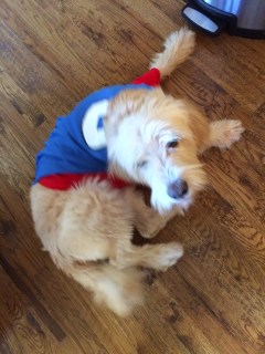Back to this year. Walt chose early on to be Spider-Man (thanks in part to a super hero b-day party we went to in late Sept). Luckily, Oscar is too young to have an opinion, so he got to be Batman. Then the whole family played along. Even Bentley.