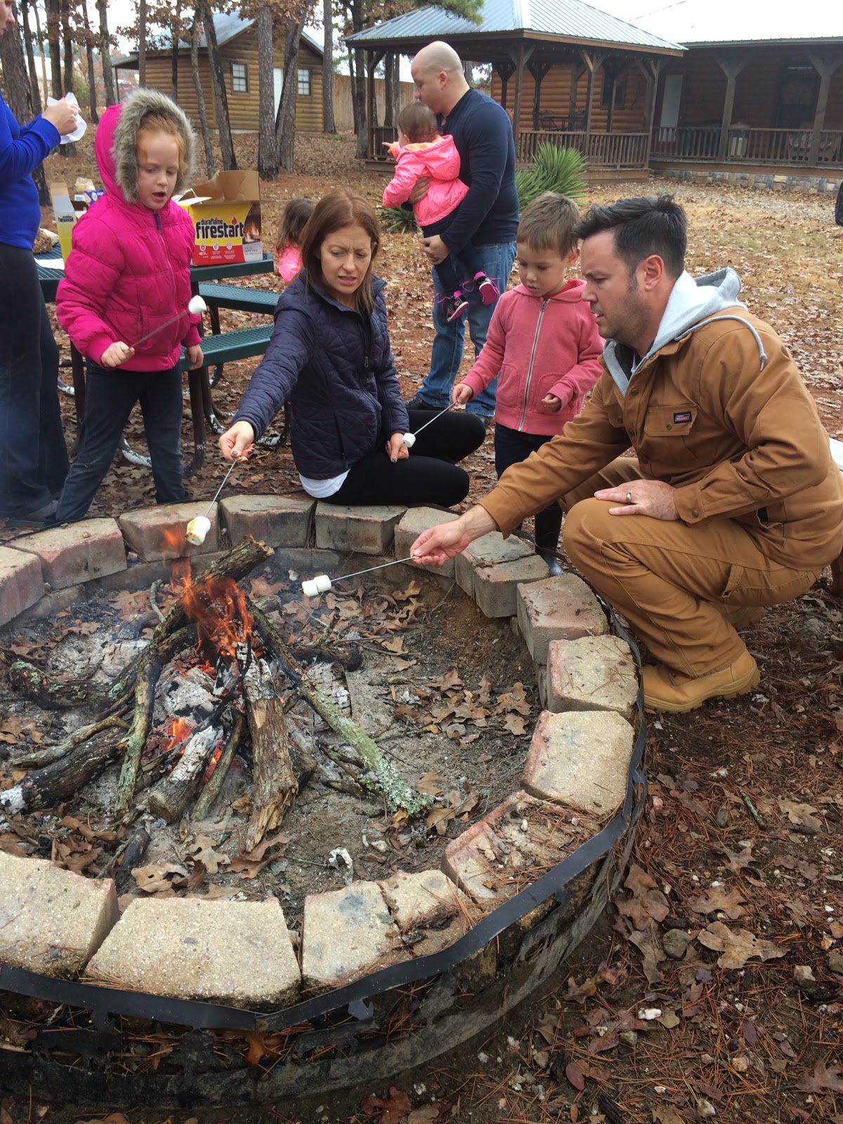 Between the three families, there are six kids that are 6 years old or younger. So, we knew sleeping would be a challenge. Luckily, Broken Bow cabin rentals have lots to choose from and we landed on a house that had plenty of rooms and tons of space. Let’s also be clear this is far from a real camping experience. The cabins are just nice houses with lots of wood details. We had stainless steel appliances in the kitchen….