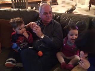 | Oscar and Avery having a little couch picnic with Uncle Frankie |