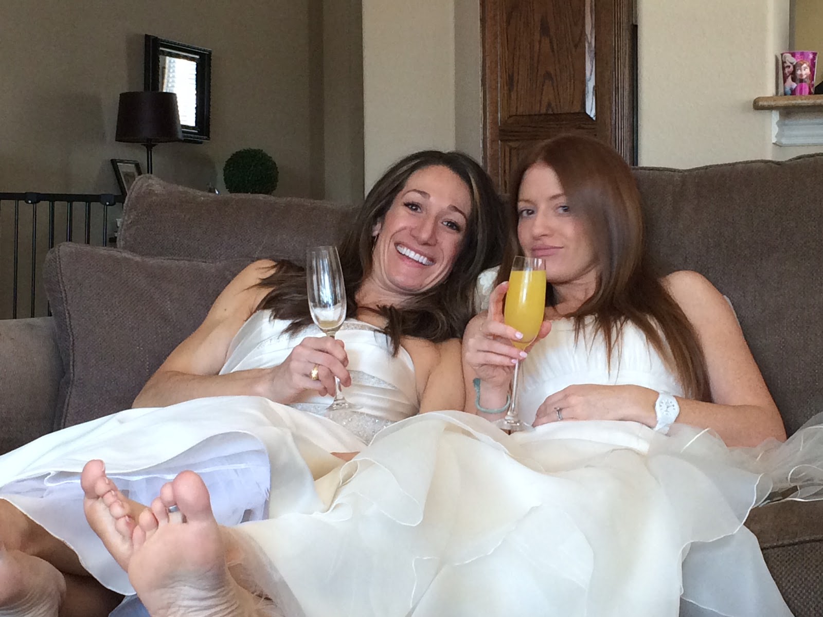 | Keeping it real in our wedding dresses. |