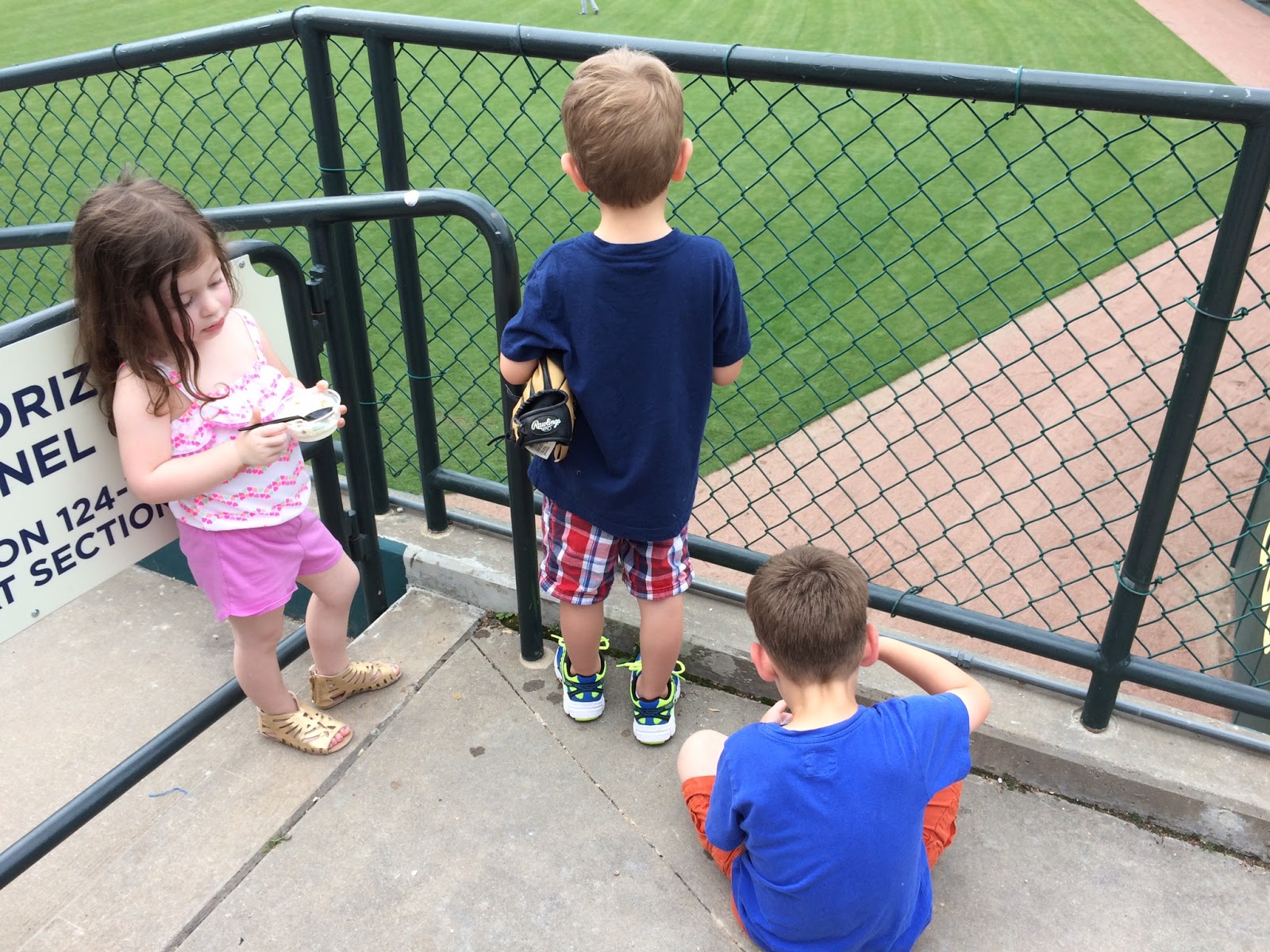 | Reese and Ruby joined us too! I’m not sure how much Reese enjoyed the actual game, but she liked hanging with these two studs and they ALL enjoyed ice cream. |