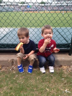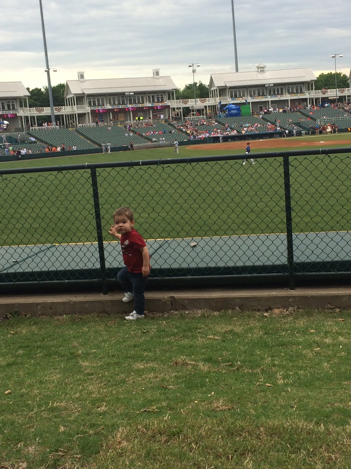 So, I was happy to see a Sunday afternoon game on the RoughRider’s schedule. We invited some friends and we were off to play ball! Both outfields are general admission seats. This is perfect for families with young kids because they can run around like crazy and you know you’re not annoying the people next to you. This is the first time that Walt actually paid attention to some of the ball playing.
