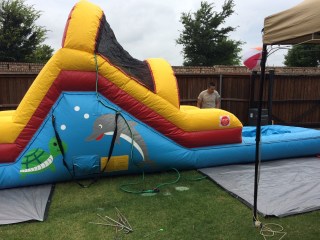 We decorated the backyard like a beach, which everything but the sand (I hate sand unless it’s actually on a beach. And even then I hate how it sticks with you for.ev.er.). We even had an inflatable water slide and a snocone truck!
