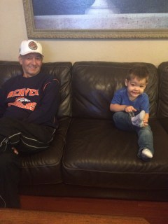 | Fall mean FOOTBALL. Here’s Oscar rooting for the nailbiting Bronco’s with Papa Chuck. |