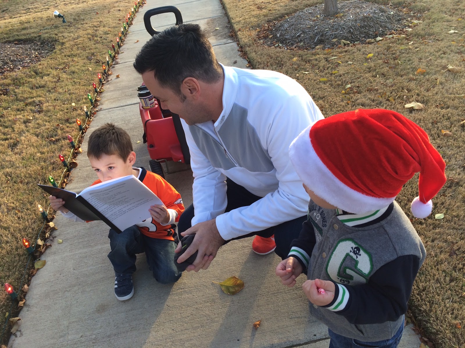| Later that night we did some neighborhood caroling and Oscar’s stage fright vanished. He requested we sing Frosty and Jingle Bells on repeat.