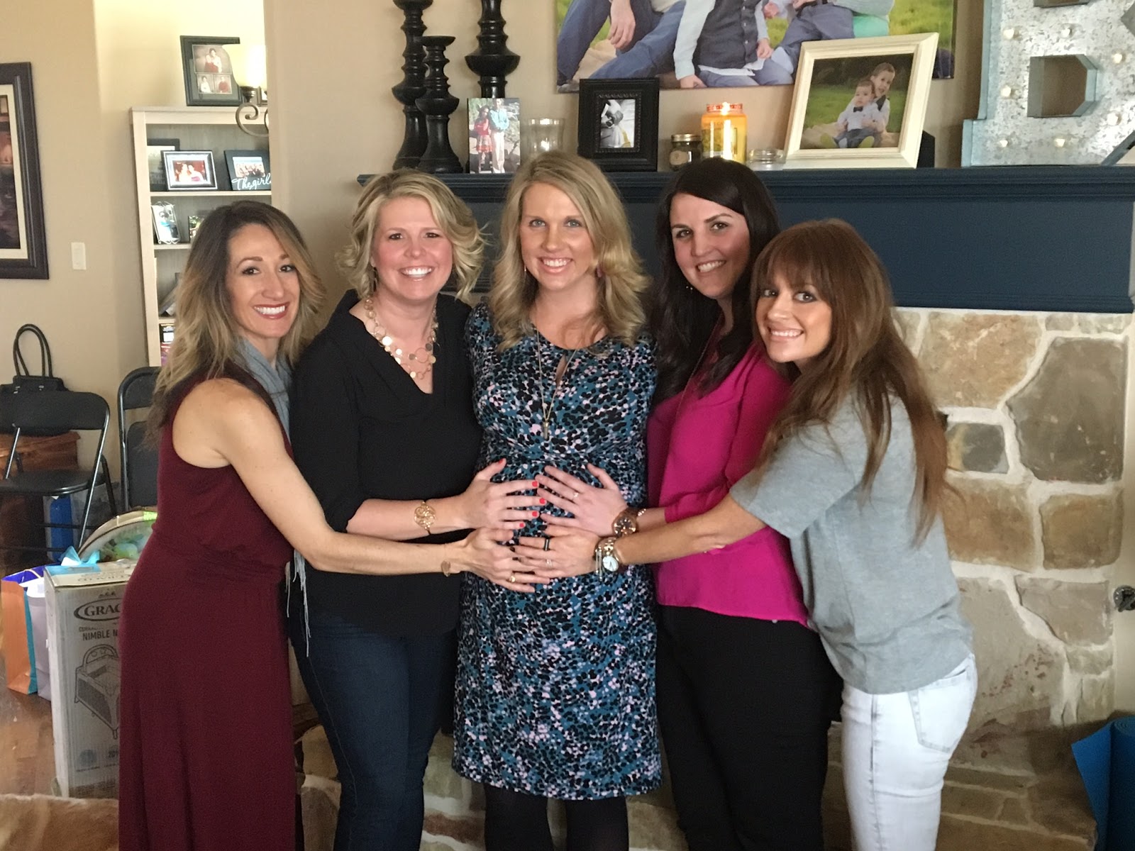 | This is how the magic happened. 6 wonderful friends and a super happy mommy-to-be. These friends span Jess’s life from hometown to college to Denver to Dallas. |