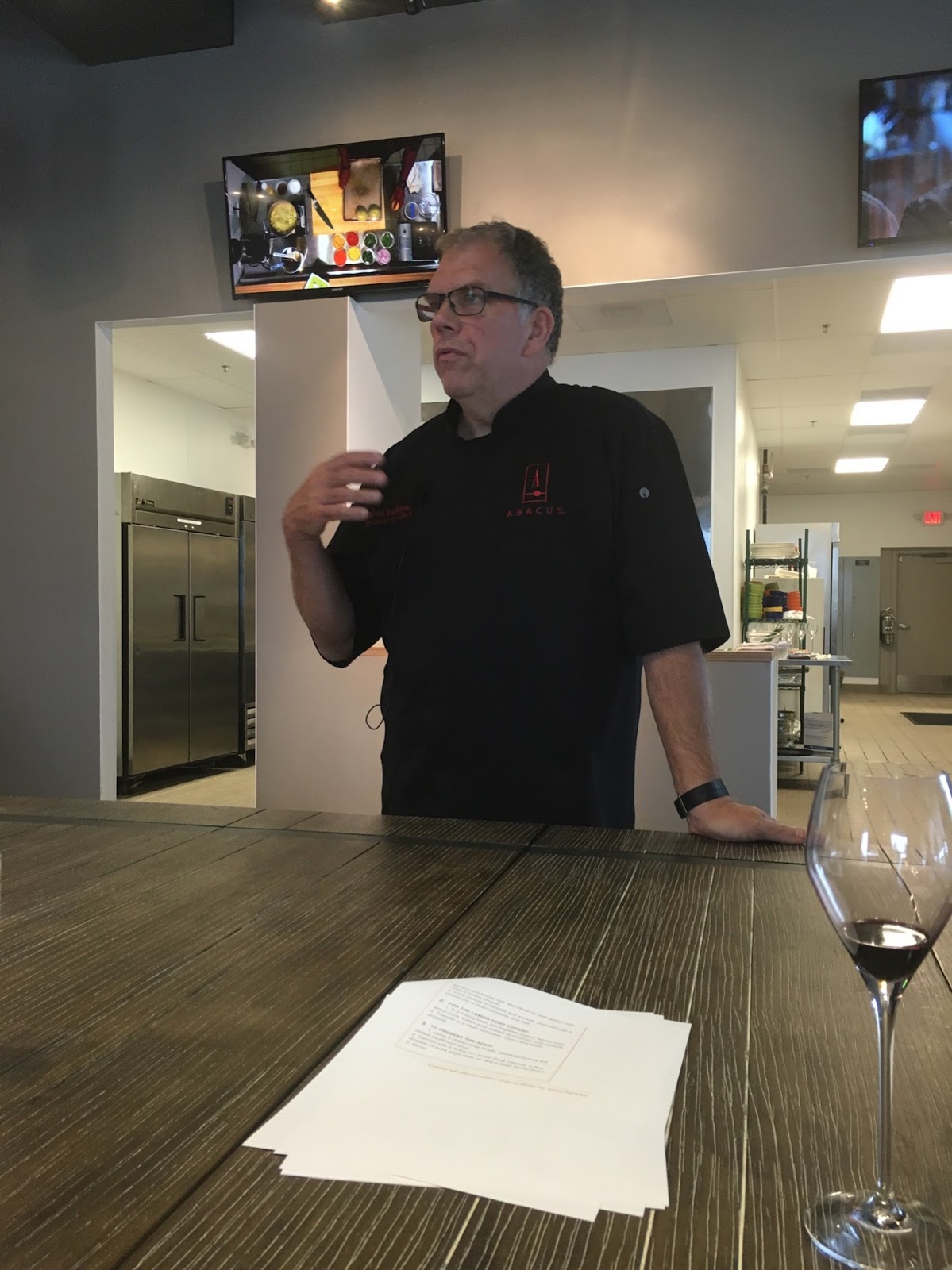 Abacus), we were all about it. We love eating. Step it up a notch with a first-class chef making the meal right in front of you. At first I thought this was a cooking class – meaning, we would be following along and making what Kent made. After we got there I was quickly corrected that it was a demo. Even better! We sat on our butts, drank wine, and listened to some amazing cooking stories from Kent — and a 3-course meal!