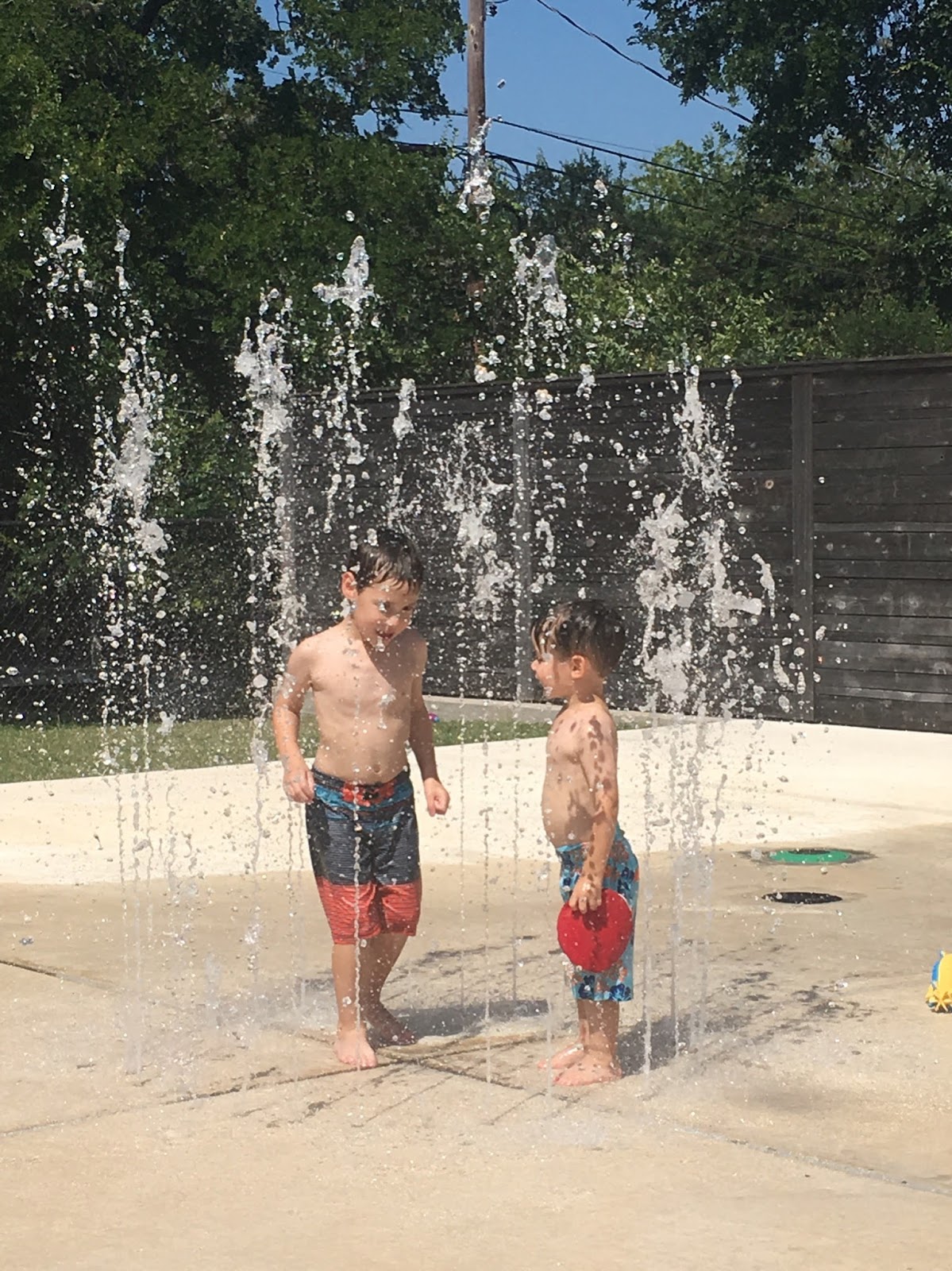 After lunch and a nap (for Walt), we went hunting for a pool (our pool at our hotel was under construction. Bad planning, mom). The Deep Eddy Pool was perfect, but just before we arrived, someone puked in the shallow end and they had to drain it. So we found a nearby splash pad.