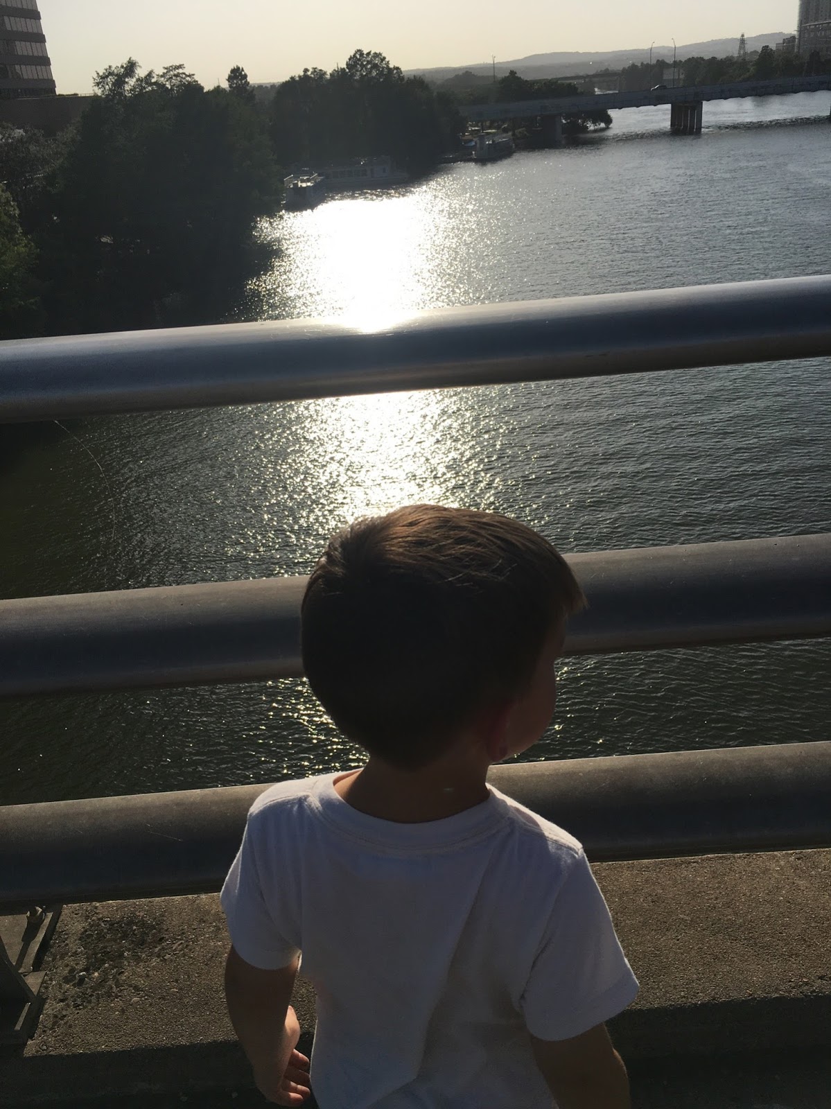 The first afternoon we were there, we ate at Gueros Taco Bar on South Congress followed by Amy’s Ice Cream. It was HOT. Too hot for Walt (who was way more fascinated by our hotel room). So, Oscar and I took a sunset walk down the Congress bridge