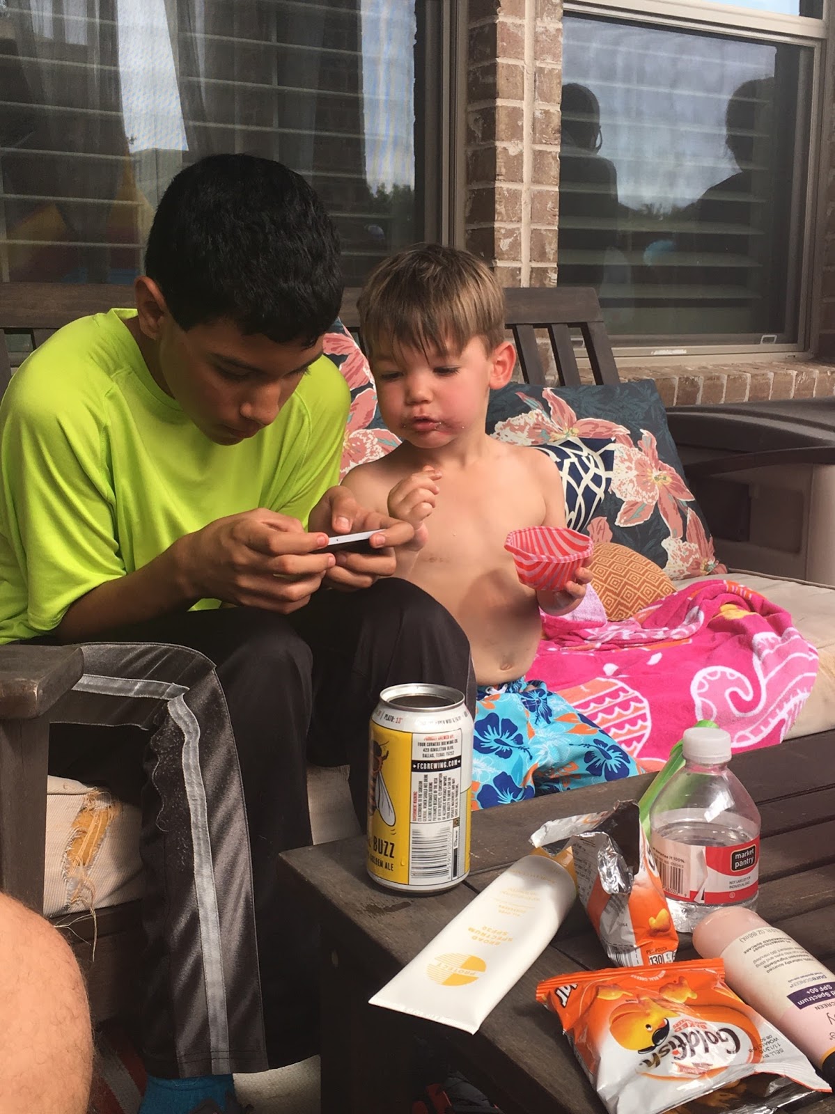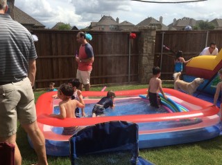 On Saturday, we celebrated with all of Oscar’s friends. We had a big water slide and tons of water games. And, for dessert, an ice cream sundae bar! Oscar didn’t even know what to do with himself when his school friends started showing up.
