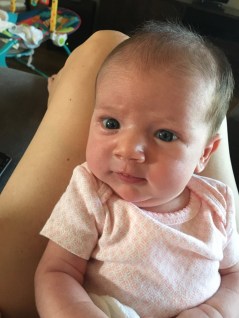 The first two weeks are a blur, as expected. We fed every three hours, day and night, whether she wanted to or not. I’m starring at my little 7.5 lb baby and all I can think is, “we need to fatten you up!”. Weighing 1-2 lbs smaller than her BIG brothers, I knew no better. Turns out, she’s perfect Vivian size. By two weeks she was up to 7 lbs 15 oz. 5 oz over her birth weight. Doc was happy, but again, the boys blasted through their birth weights in like a day and a half. Viv is still wearing newborn sized clothes (again, WTH!?) and while she can fit in a newborn diaper, I bumped her up to a size 1 to avoid an unexpected blowout.