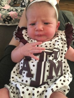 so so cute! thank you for posting. I need reminders on what being a new mom is like. I had forgotten about how crazy it is when they lull you into thinking you have a routine and then *bam* they're up at weird hours one night. Pray hard (all y'all) for the Ags tomorrow…. my toughest day of the year because we HAVE to beat the hogs for me to get bragging rights in my house for the year!