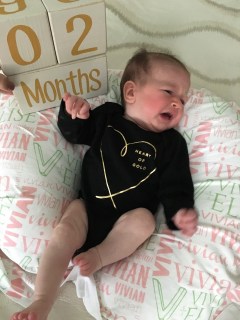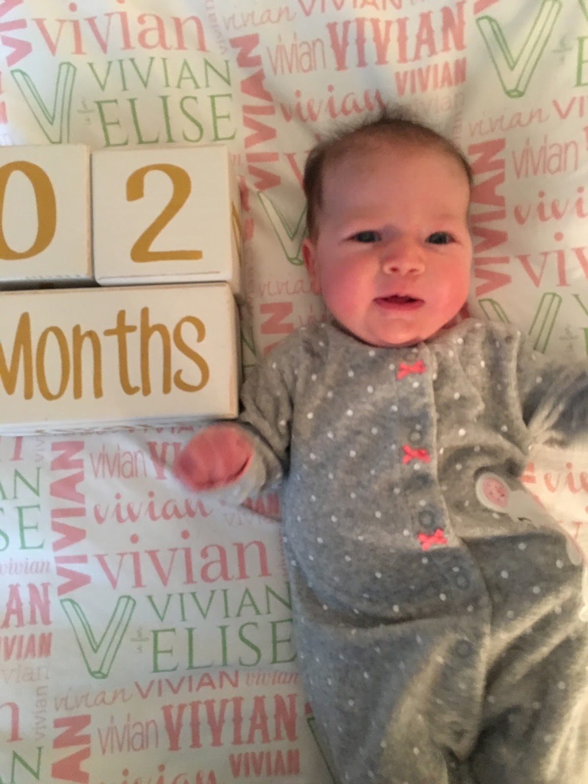 Here we are again! Another month. Time is on a freight train right now. I barely remember month one. Now sweet Viv is two months old and I know it’s just going to come faster and faster.