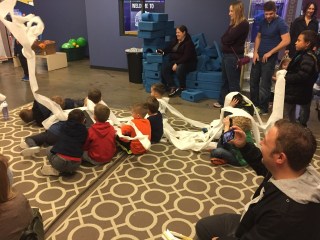 Now on to his actual birthday! We got to have his party ON his actual birthday. It was so fun, but a very crazy day. Walt’s party was at the Sci-Tech Discovery Center and they did a Blast Lab theme. Walt had a bunch of new friends from his Kindergarten class along with soccer buddies and some other close pals.