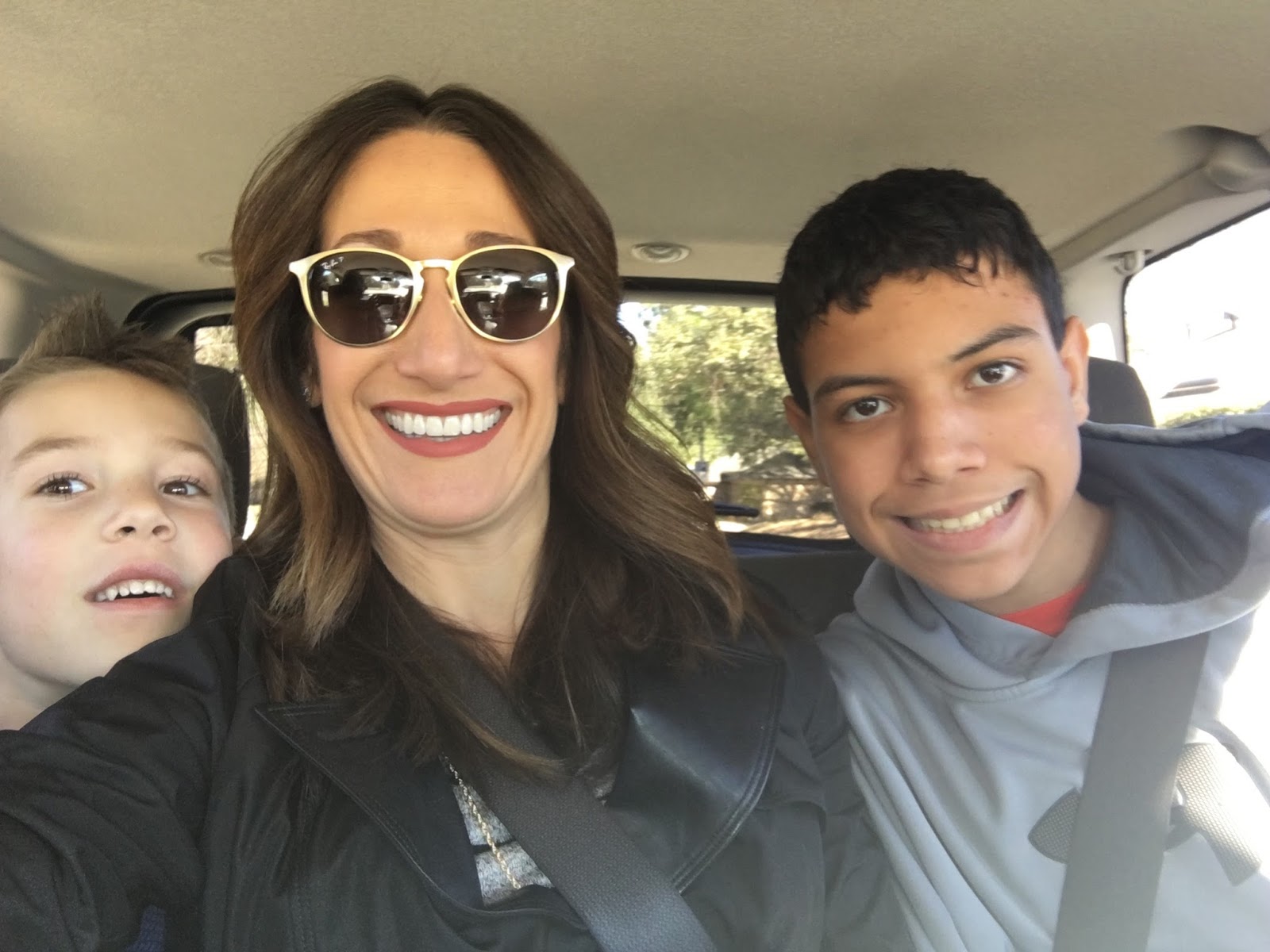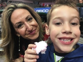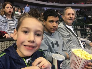 | These boys! Kathy’s oldest, my oldest and Papa Chuck ready for some Globetrotters |