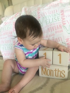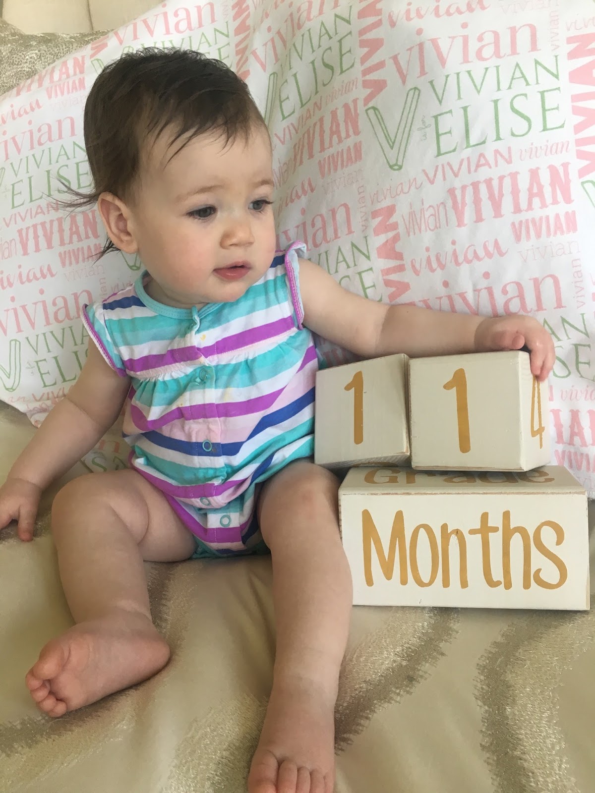 Vivian has a quiet curiosity about her. She loves exploring, but also likes to sit with what she’s found and examine it, taste it, shake it, then move onto the next thing. While she doesn’t seem as “busy” as the boys were at this age, she’s still on the go most of the time. She also is completely content being held. Oscar was too, but Walt was never ok with that.