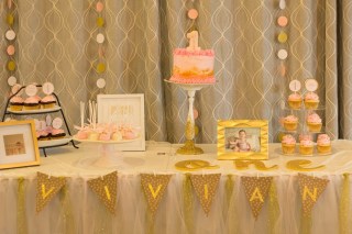 I think it’s safe to say that I’ve fully entered Girl Mom Mode. When we found out we were having a girl, I was so vested in the boy world that I refused to succumb to glitter and pink. So, what better way to contradict myself than throw a pink and gold party for Viv’s first birthday??